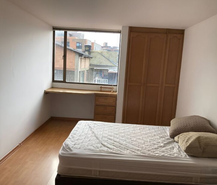 Aparta estudio en venta de 18 años de antigüedad, ubicado en San Luis a 4 cuadras del centro comercial Galerías; cuenta con 2 ambientes, habitación amplia con baño privado y sala cocina; estrato 4, tercer piso con ascensor, vista interior hacia el centro comercial; incluye zona de lavandería y espacio de estudio; no tiene parqueadero ni depósito; valor de administración $560.000; vigilancia las 24 horas, los 7 días de la semana, no dispone de zonas comunes; actualmente arrendado en $1.800.000 hasta octubre; valor de venta $260.000.000 Excelente ubicación cerca de CC Plaza 54, parque de Galerías, estación de Transmilenio El Campin, paradas de SITP y Profamédica Centro Médico.